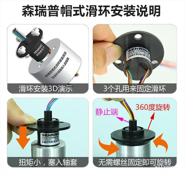 由于推荐的是法兰规格大电流帽式规格的滑环,客户尚未收到货,暂时还没安装,这里先分享标准的安装方法。