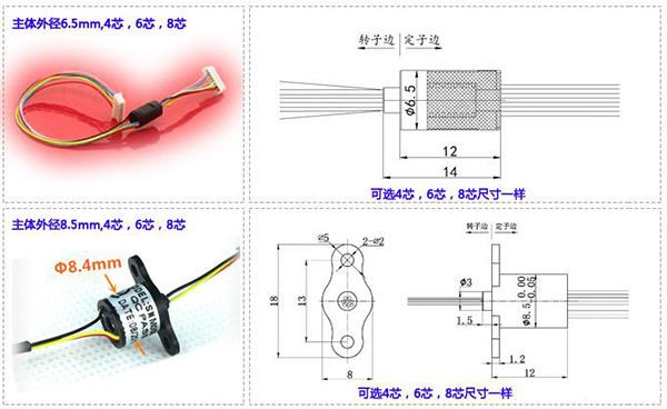 按滑环外径分类:有6.5mm、7.1mm、8.5mm等多种外径可选,如:SNM006系列、SNM008系列;