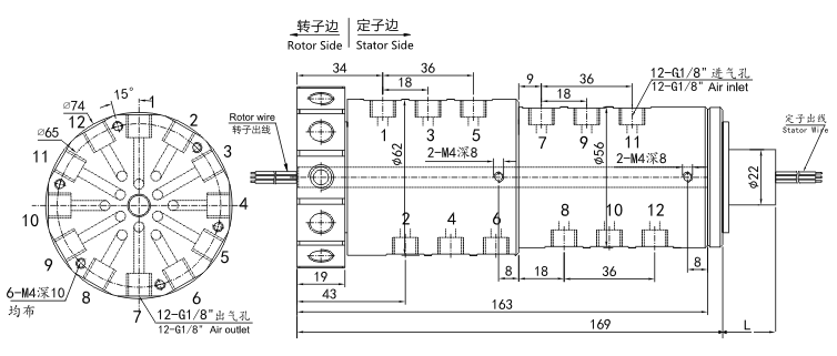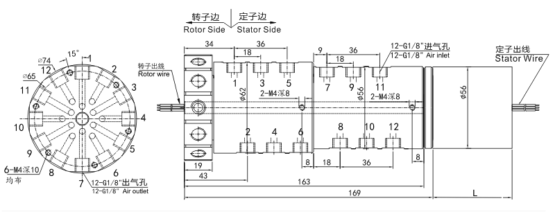 - 多通路旋转气动接头,支持12路4和6mm气管单独传输;