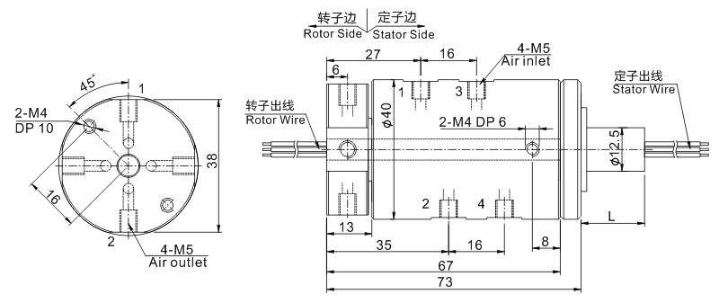 - 四通路气电一体滑环,4个气液通路相互独立,互不干涉;