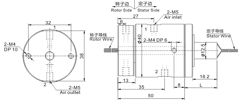 - 二通路气电滑环,中心孔4mm,外径40mm,支持4~6mm气管;