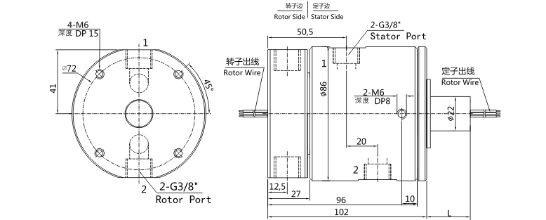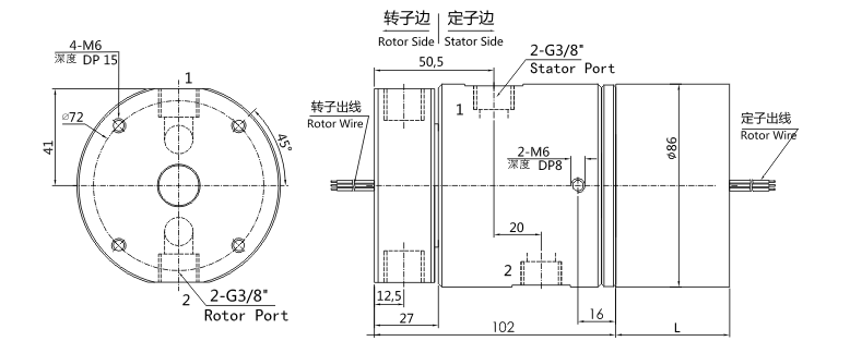- 二通路气路滑环,17mm中心孔,外径86mm,10~12mm气管;